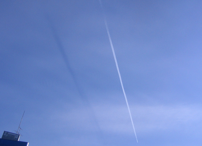 ↓ 飛行機雲の影?