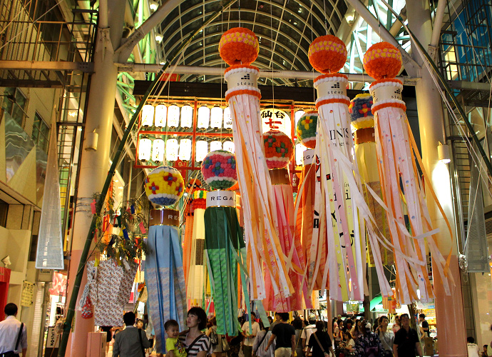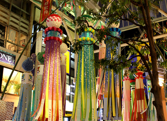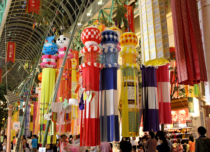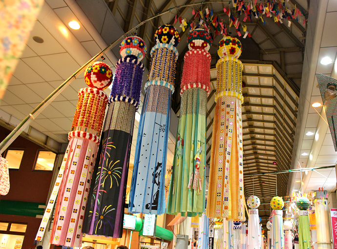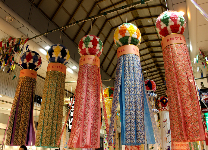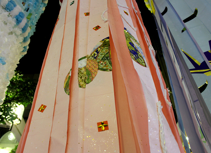 9時前くらいに行ったら一部の七夕飾りがビニールかけられてました。