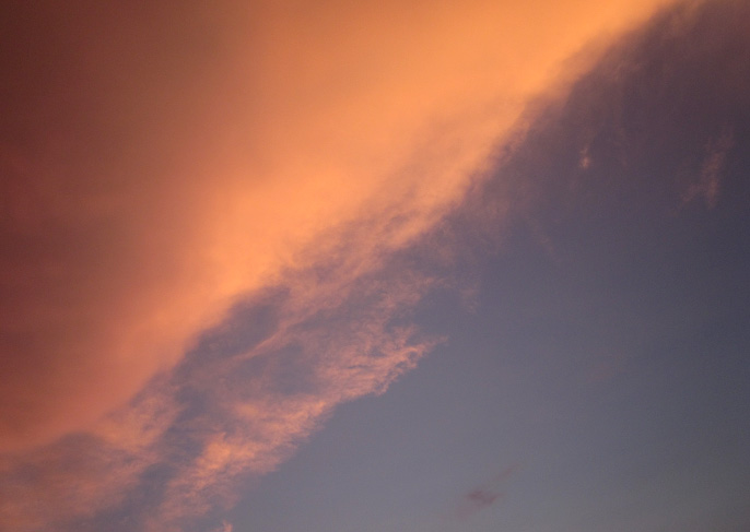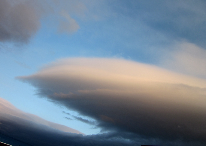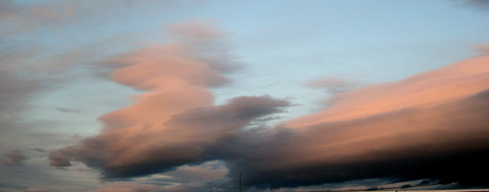 最大余震の翌日(4月8日)の夕暮れ時 変わった形の雲