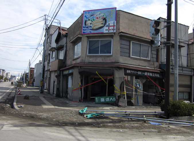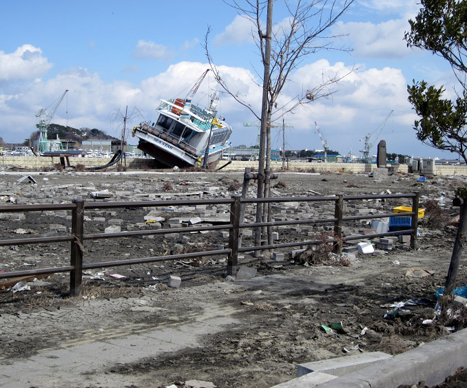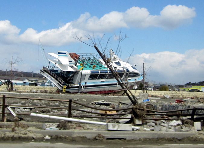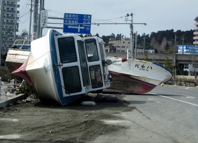道路にも船が横倒しになっている