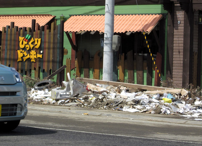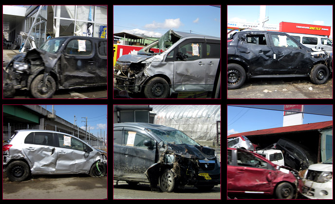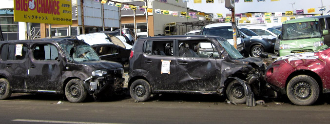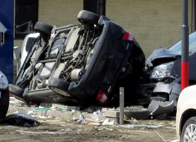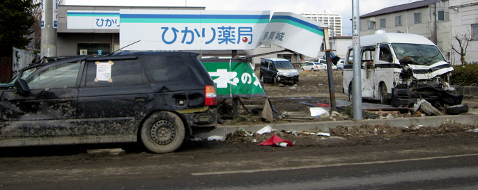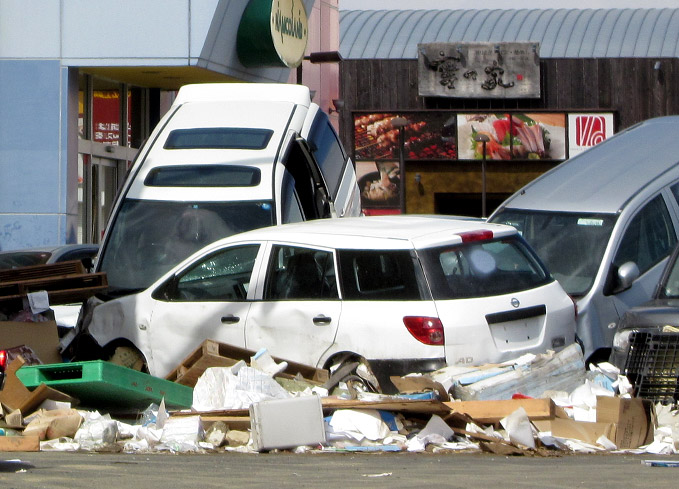 津波で大破した車が並ぶ多賀城市 (3000台以上あるそうです)